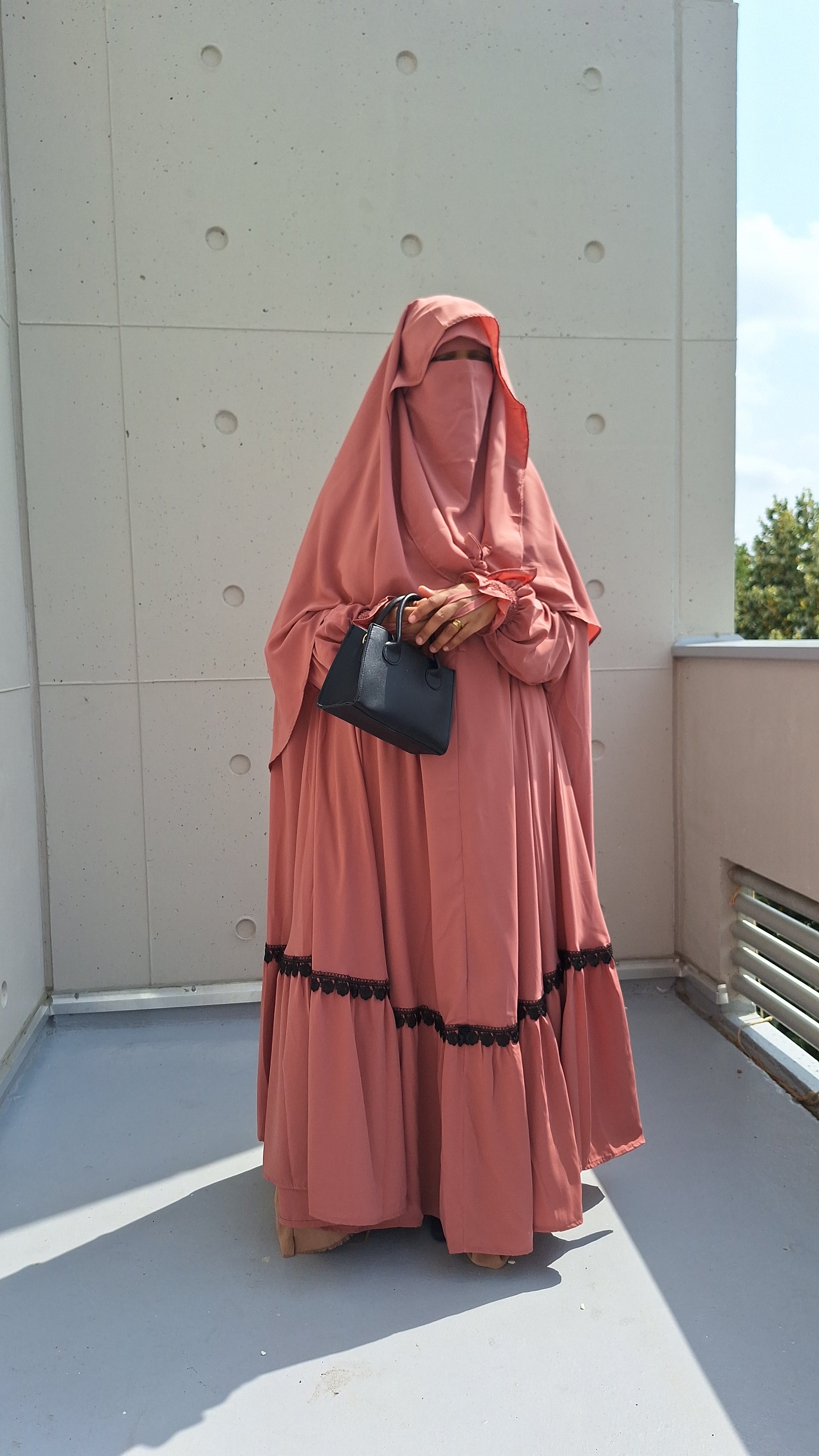 L’ensemble est complété par un niqab assorti, pour une tenue complète, harmonieuse et pudique.