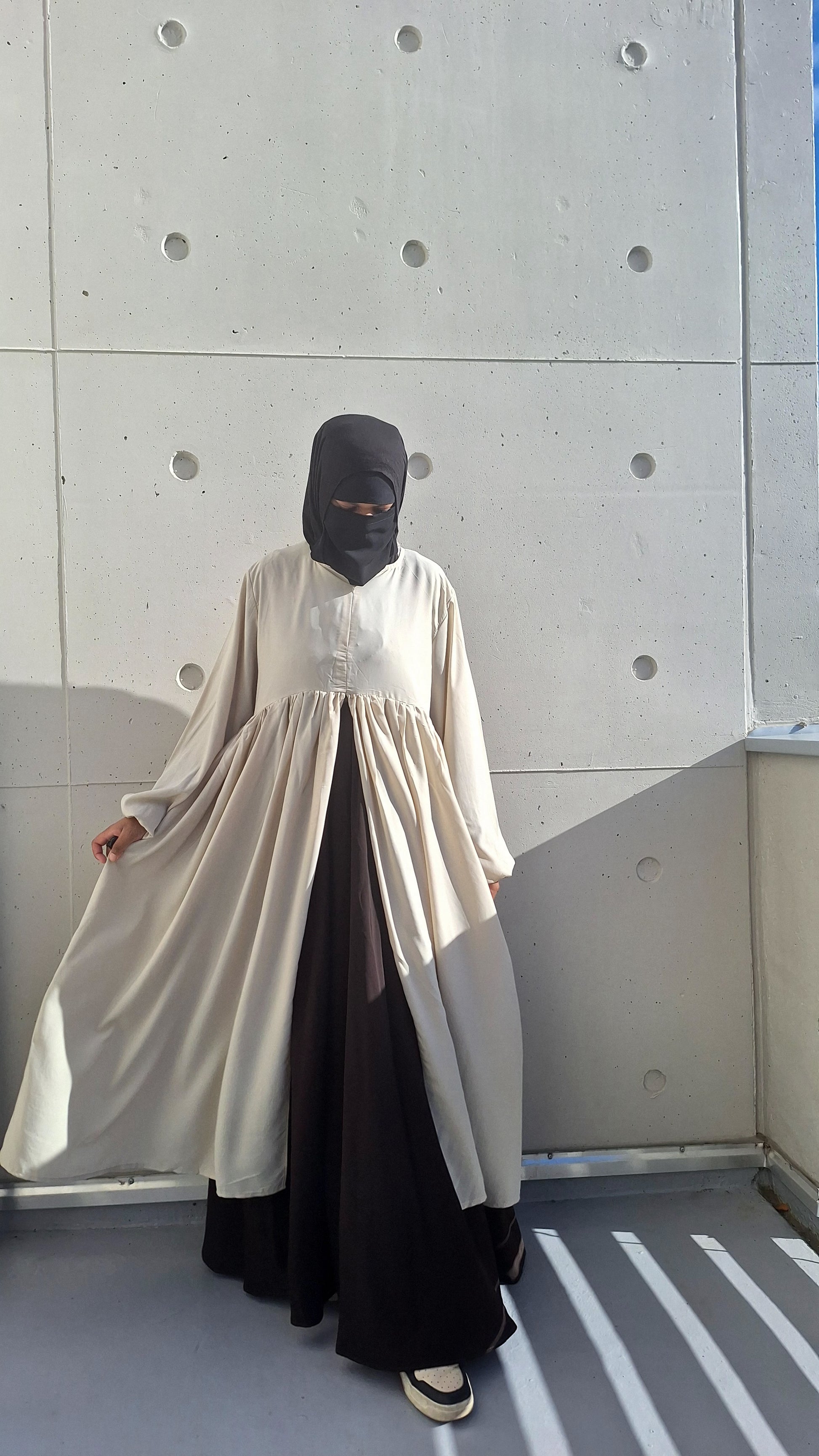 Cet ensemble a été créé en pensant à votre confort et votre pudeur. Le tissu fluide et doux permet un port quotidien sans contrainte, tout en offrant une allure raffinée.