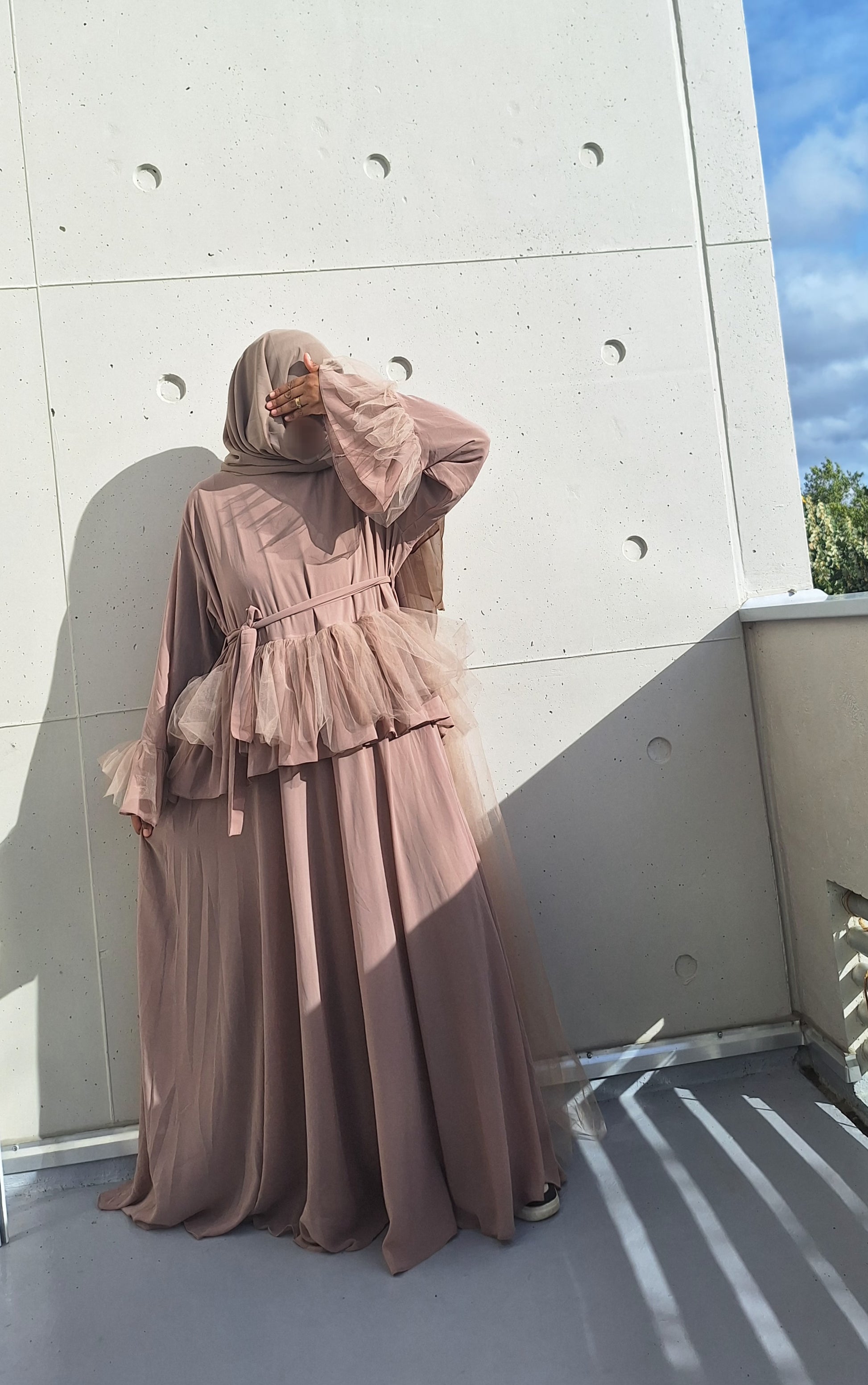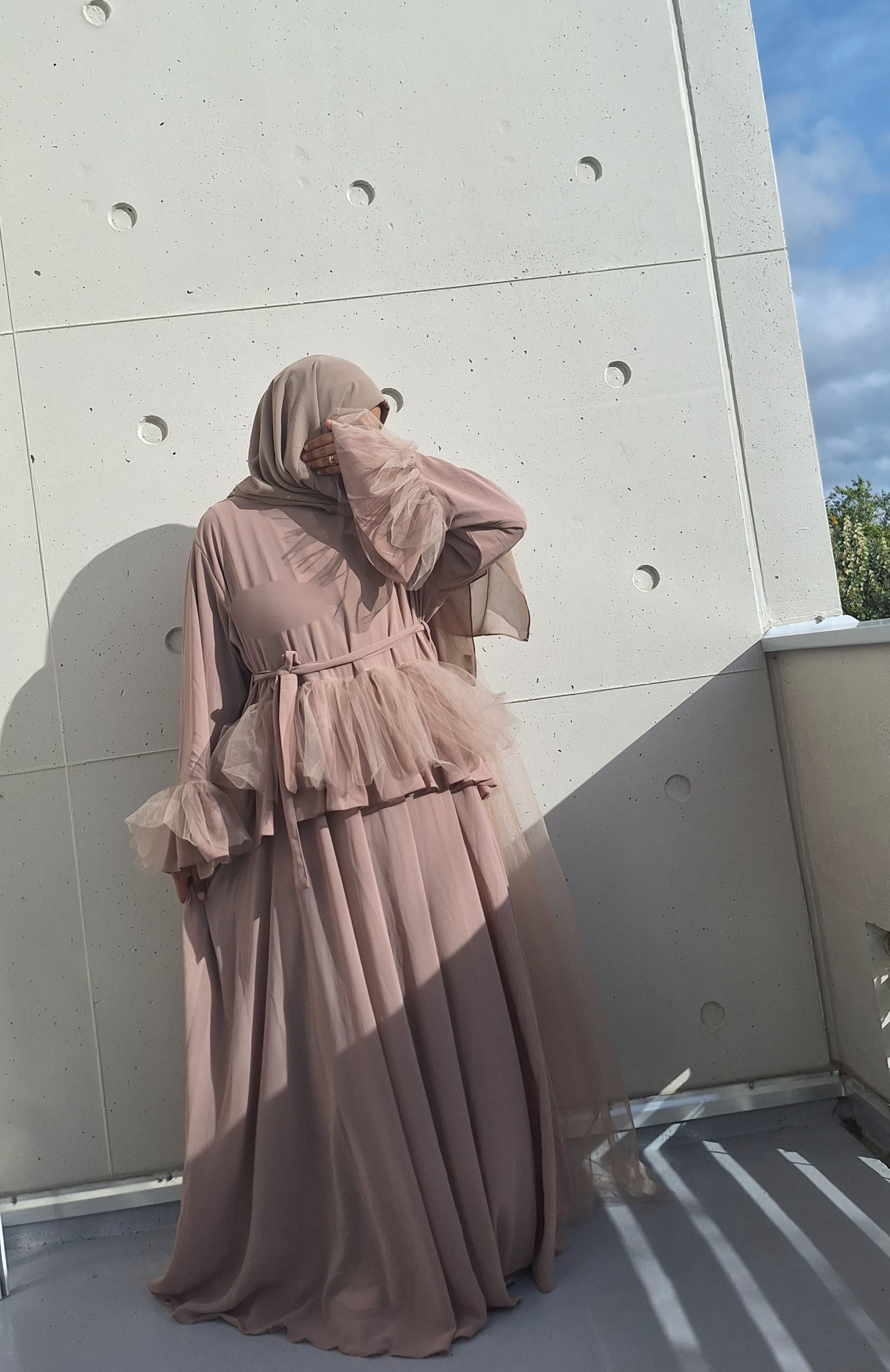 Magnifique robe pensée pour sublimer vos occasions spéciales. Elle est accompagnée d’une cape à l’arrière pour une touche de pudeur supplémentaire tout en légèreté.