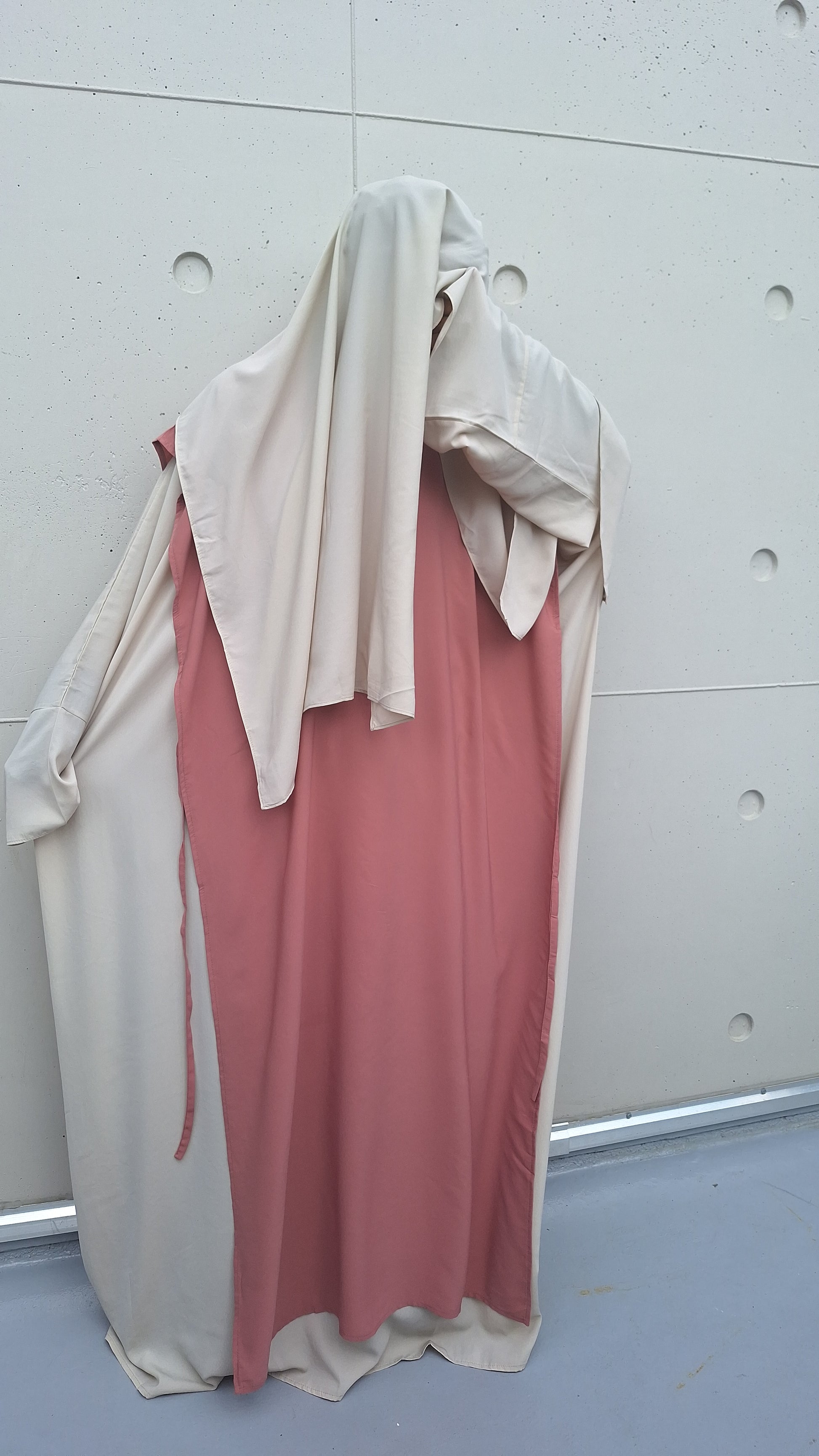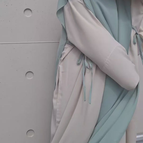 Se porte par-dessus l’abaya pour plus de couvrance et de style