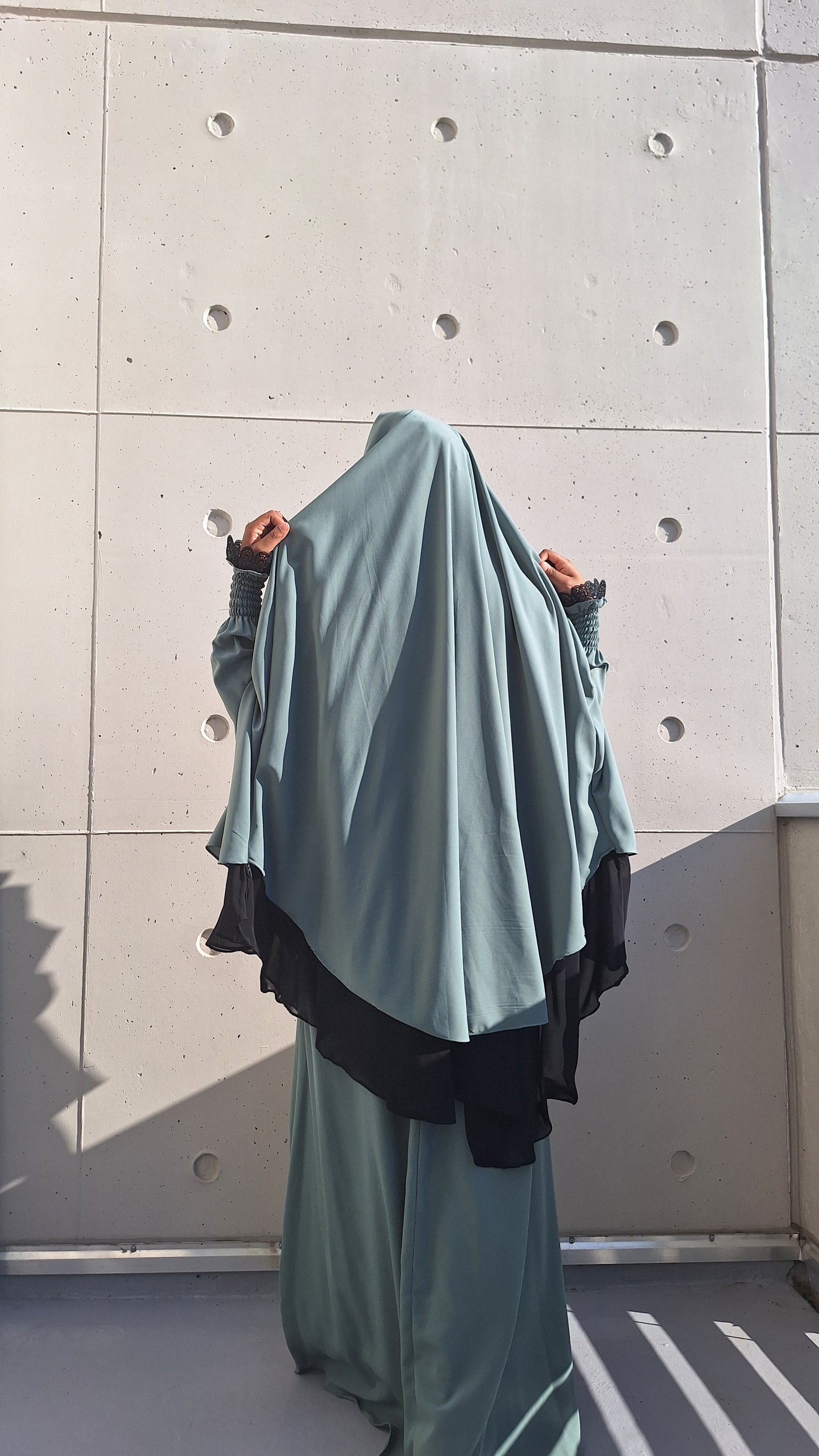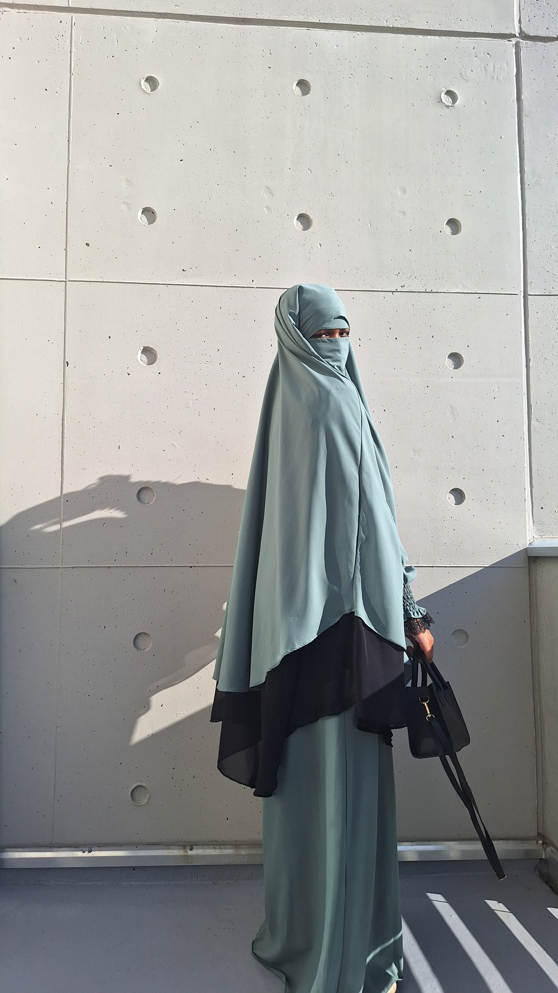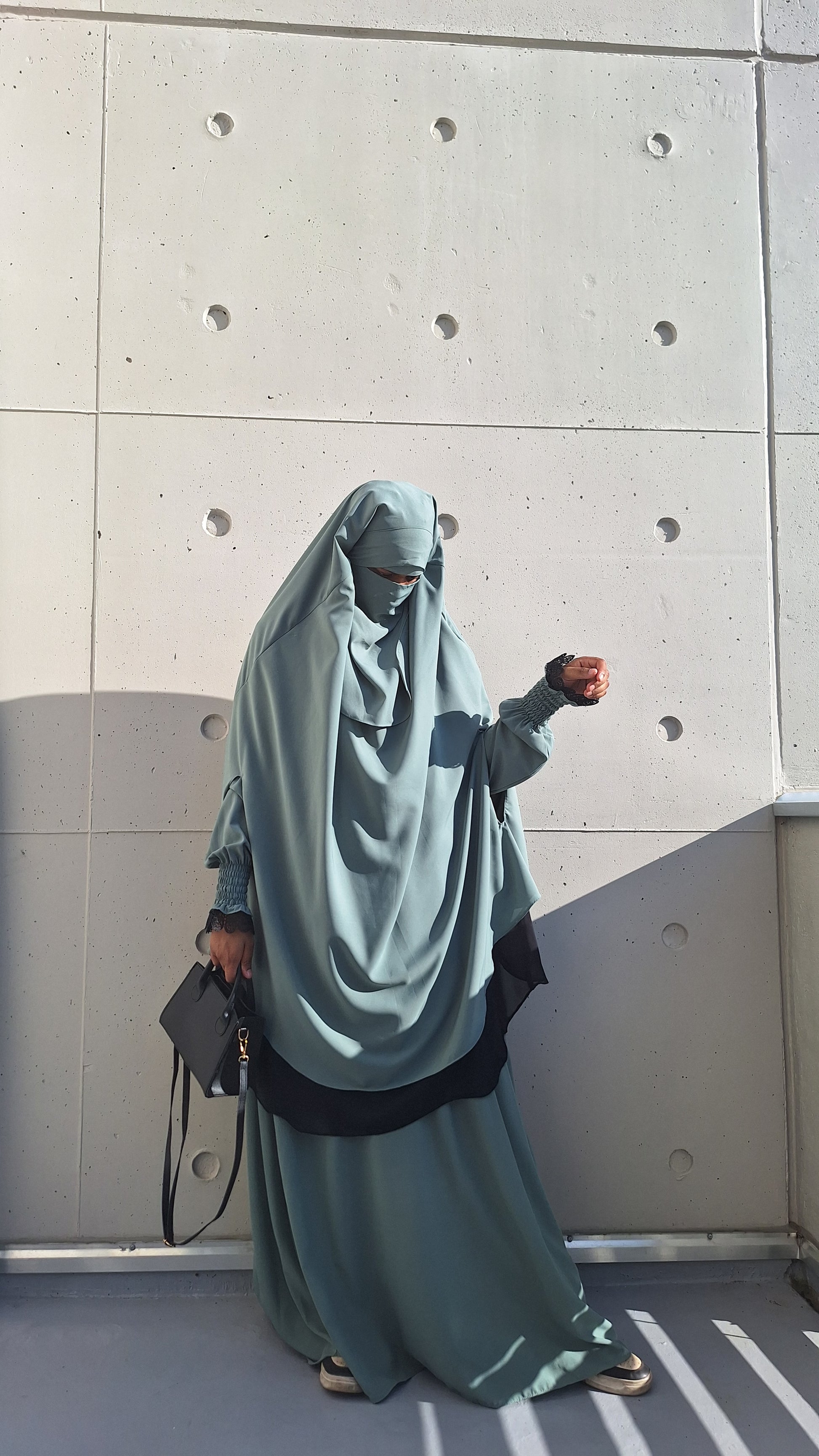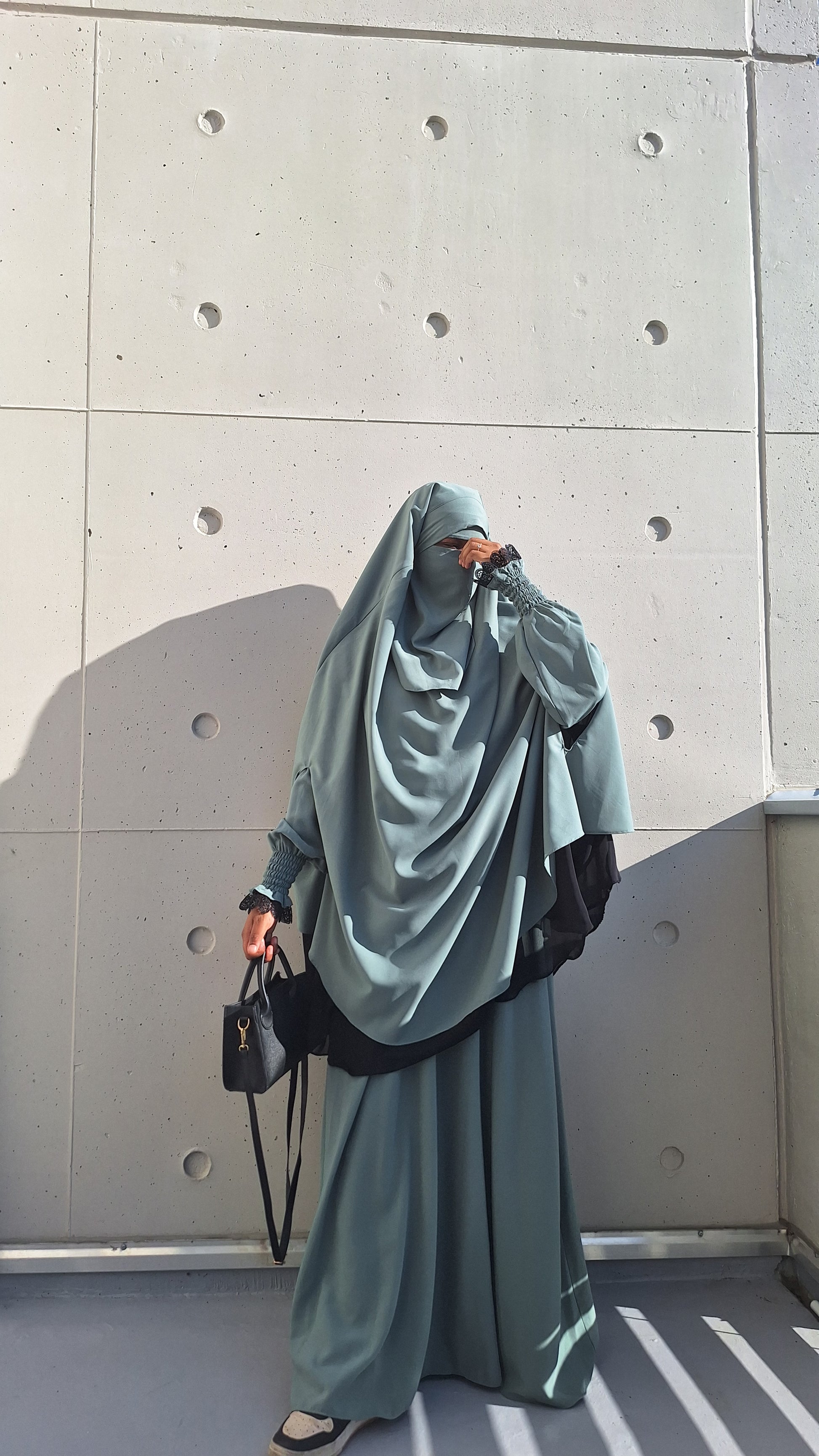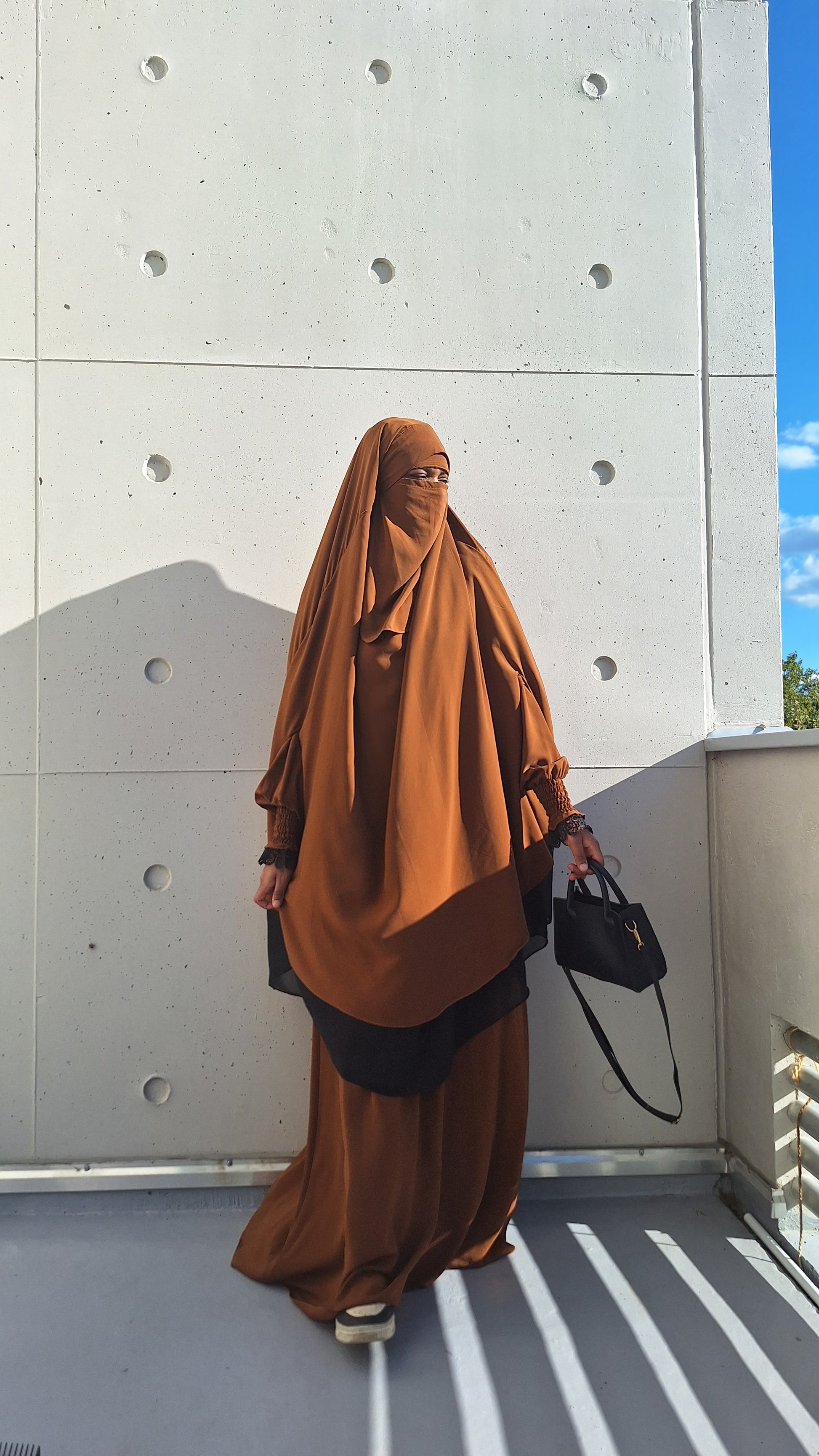 ✔ Niqab assorti : Un niqab discret qui complète parfaitement la tenue pour un look harmonieux et pudique.